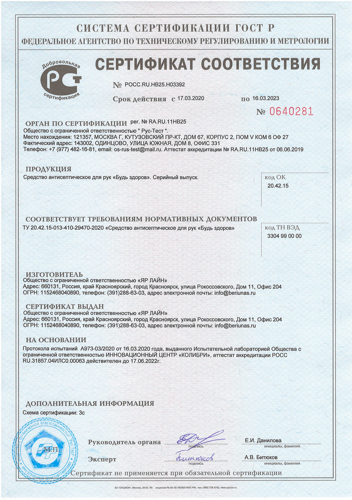 Сертификат соответствия на УФ-рециркуляторы Чистый воздух
